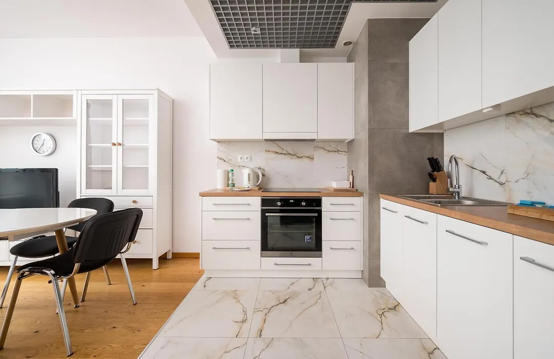 In der Küchenzeile gibt es auch einen Herd und einen Geschirrspüler. Das Apartment ist vom Flughafen Warschau-Frédéric-Chopin aus, der etwa 5 km entfernt ist, leicht zu erreichen.